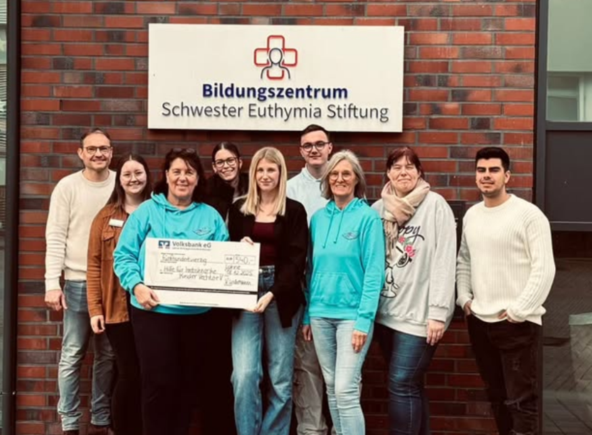 Ein ganz besonderer Moment folgte heute: Die Kurse durften der Kinderkrebshilfe Vechta persönlich einen Scheck in Höhe von 540 Euro überreichen. Der Erlös der Tombola kommt damit direkt Kindern und Familien zugute, die mit einer schweren Erkrankung konfrontiert sind. Die Freude darüber, mit der eigenen Aktion etwas Gutes bewirken zu können, war bei allen Beteiligten deutlich spürbar.